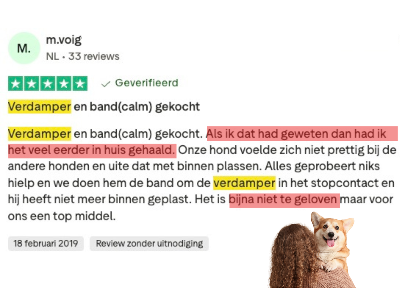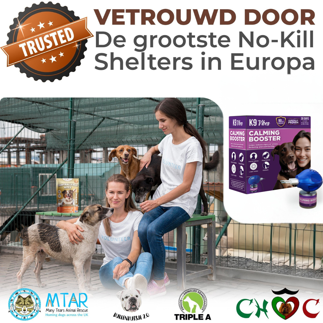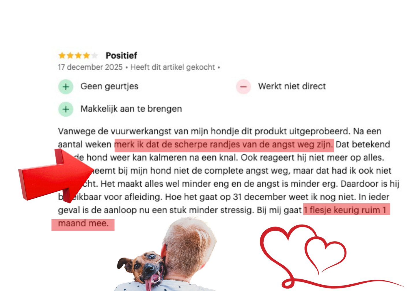 Ja, dit is de meest complete aanpak. De verdamper creëert een geruststellende sfeer in huis (ondersteuning van buitenaf), terwijl onze supplementen zoals de Calming Complex chews of het Kalm aan poeder de balans van binnenuit ondersteunen. Ook de combinatie met onze stress halsband is uitstekend voor buitenshuis.