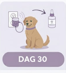 De werking van de feromonen start direct zodra de verdamper in het stopcontact zit. Veel honden reageren al binnen 3 tot 7 dagen op de geruststellende signalen in de omgeving. Voor het meest stabiele en langdurige effect is het aanbevolen de verdamper minimaal 30 dagen onafgebroken te gebruiken.