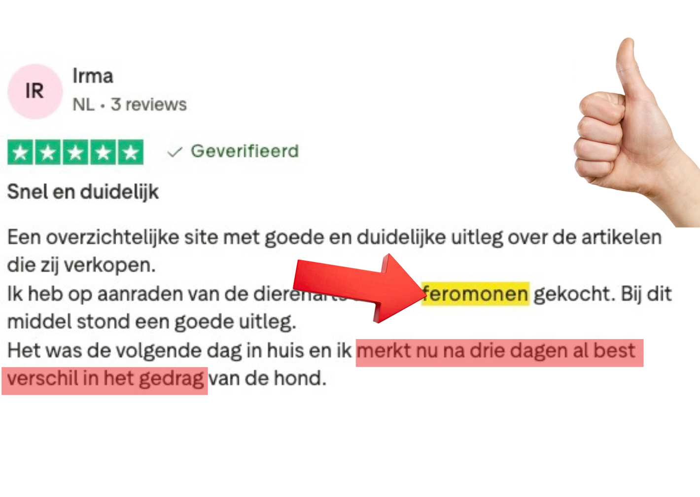 De effectiviteit van feromonen is klinisch bewezen. Als u na 30 dagen geen verbetering in het gedrag opmerkt, controleer dan de volgende punten: