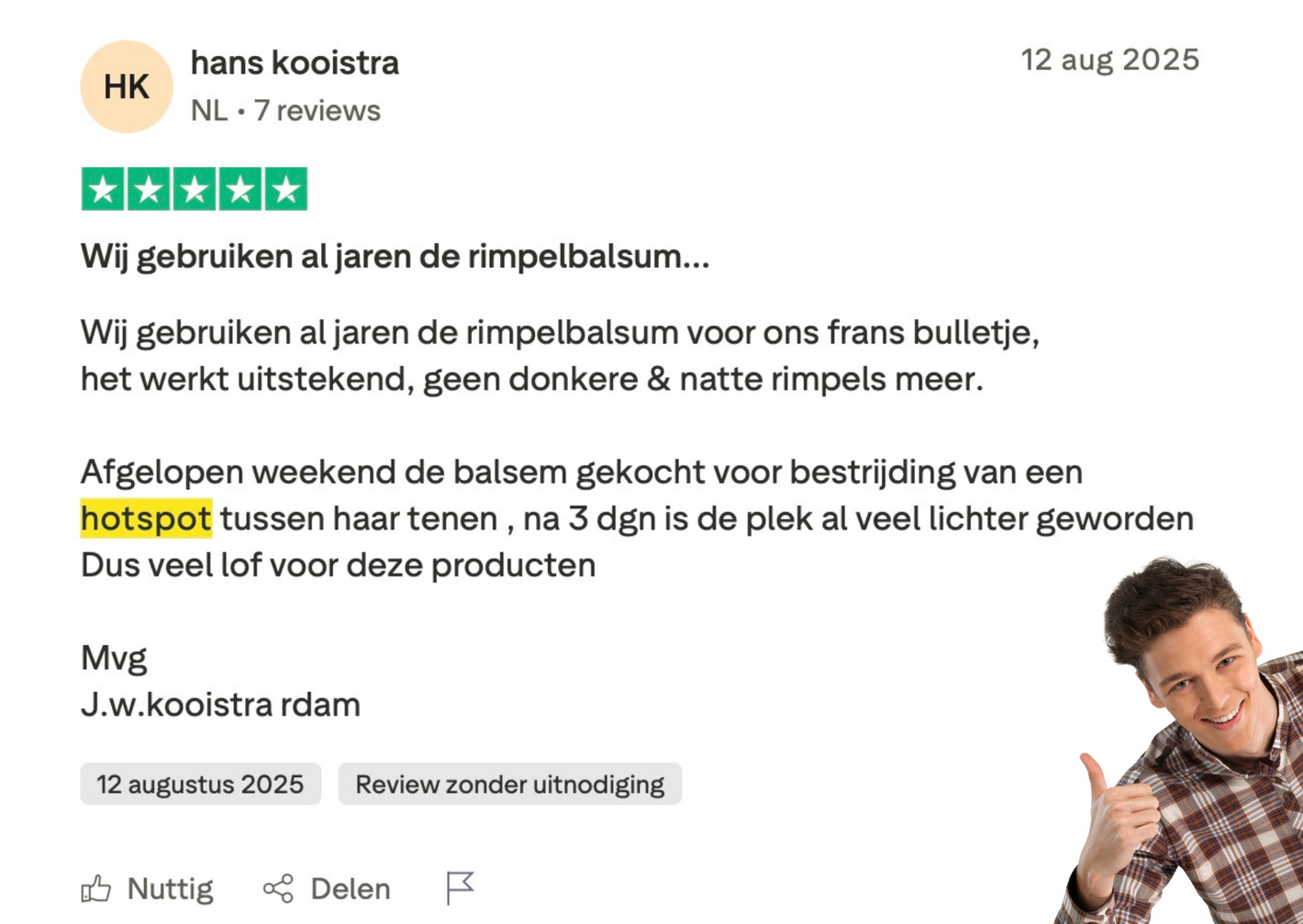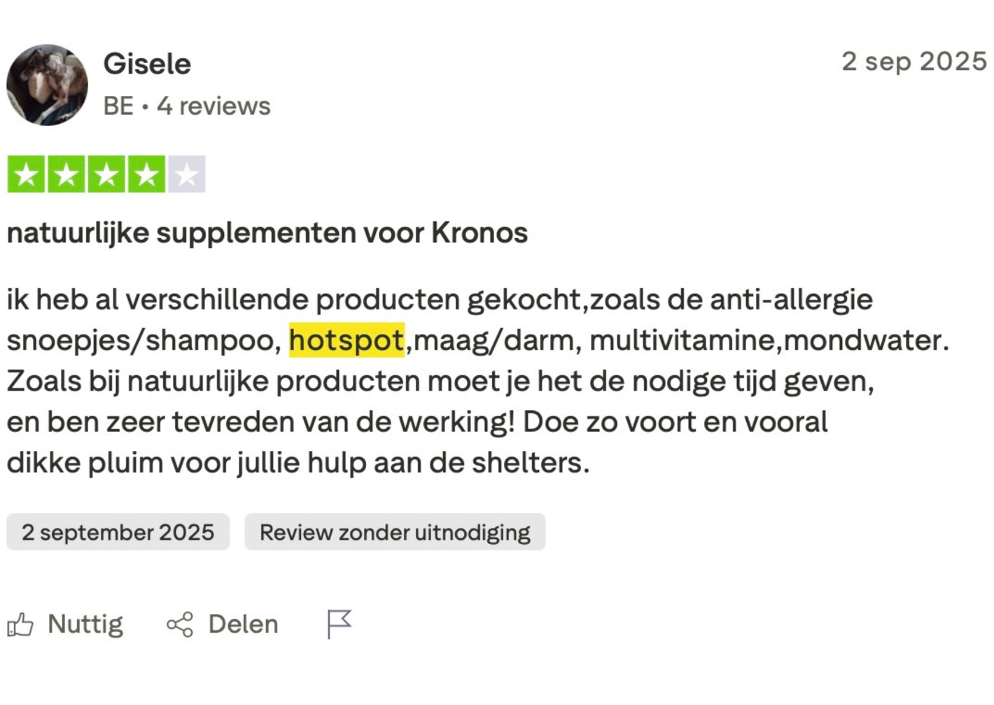Absoluut. Terwijl de balsem de hotspot van buitenaf indroogt en kalmeert, ondersteunen onze supplementen (zoals de Allergy Shield) het immuunsysteem en de huidbarrière van binnenuit. Dit is de krachtigste combinatie voor honden die gevoelig zijn voor huidproblemen.
